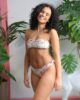Il modello bikini arricciato (con top a fascia o a triangolo) ha un taglio comodo e dalla ampia vestibilità. Lo slip è arricciato con un elastico interno in silicone trasparente ed è regolabile ai lati grazie ai fiocchetti. Lo slip ha una sgambatura regolare, ed una altezza coprente (regolabile sia grazie all’arricciatura dell’orlo sia in base a quanto viene stretto lateralmente, quindi potete tenerlo lento e abbassato o più teso e più alto). Sul retro il taglio dello dello slip è comodo e coprente.