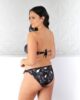 Il modello bikini arricciato (con top a fascia o a triangolo) ha un taglio comodo e dalla ampia vestibilità. Lo slip è arricciato con un elastico interno in silicone trasparente ed è regolabile ai lati grazie ai fiocchetti. Lo slip ha una sgambatura regolare, ed una altezza coprente (regolabile sia grazie all’arricciatura dell’orlo sia in base a quanto viene stretto lateralmente, quindi potete tenerlo lento e abbassato o più teso e più alto). Sul retro il taglio dello dello slip è comodo e coprente.
