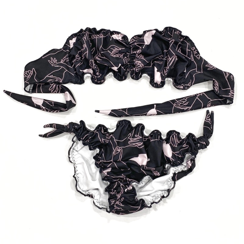 Variazioni: è possibile mixare top e slip per misura, fantasia o modello (arricciato o classico). Procedi così: prima contattami su info@byalis.it o in Direct su Instagram per conferma della disponibilità del tessuto, poi potrai semplicemente specificare la variazione nelle note a fine acquisti.