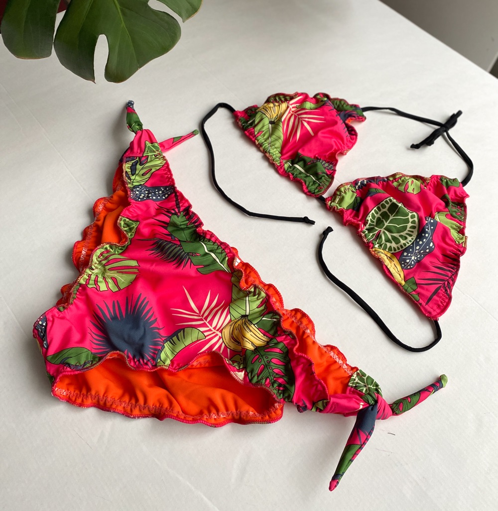 Variazioni: è possibile mixare top e slip per misura, fantasia o modello (arricciato o classico). Procedi così: prima contattami su info@byalis.it o in Direct su Instagram per conferma della disponibilità del tessuto, poi potrai semplicemente specificare la variazione nelle note a fine acquisti.