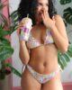 Il modello bikini arricciato (con top a fascia o a triangolo) ha un taglio comodo e dalla ampia vestibilità. Lo slip è arricciato con un elastico interno in silicone trasparente ed è regolabile ai lati grazie ai fiocchetti. Lo slip ha una sgambatura regolare, ed una altezza coprente (regolabile sia grazie all’arricciatura dell’orlo sia in base a quanto viene stretto lateralmente, quindi potete tenerlo lento e abbassato o più teso e più alto). Sul retro il taglio dello dello slip è comodo e coprente.