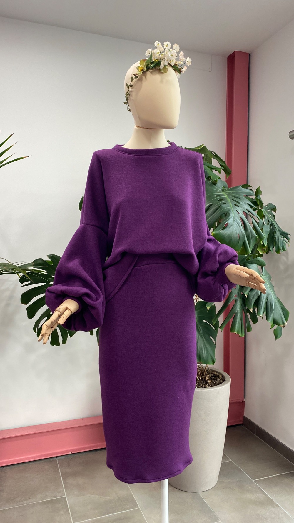 Gonna tubino in morbida ed elasticizzata maglia doppiata in poly e nylon effetto cashmere, lunghezza midi e con elastico alto in vita.